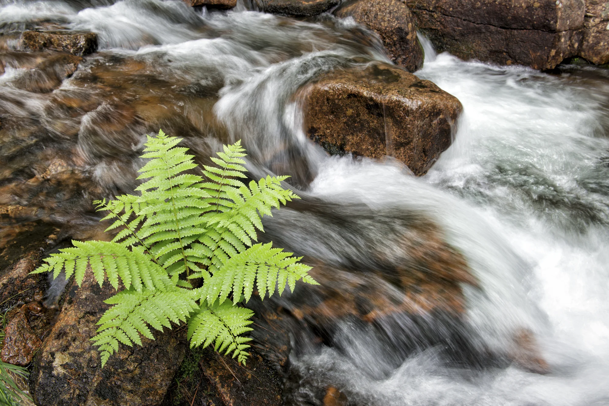 Who says rain isn't good for photography? After the rain there are many wonderful streams and waterfalls to photograph in Acadia National Park. I spotted this scene while leading a photo safari along Jordan Stream and pointed it out to those on the safari. I was drawn in by the complementary colors of red rocks and the green fern. The next day I went out for about an hour trying to find this particular angle. To learn how to create images like this, consider taking one of my nature photography workshops in Acadia National Park.